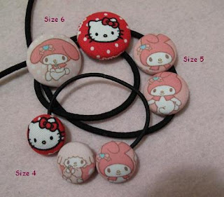 My Melody Fabric Buttons... These are made from authentic Sanrio Fabric.Range from $3.00 to $4 with respect to their size. )(If you want to add fabric buttons to ponytail band or clips, add $1 to the button cost)