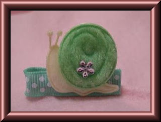Snail Party in the Garden series. $4.50 each All snails are shown on 35mm alligator clips. Customization on other clips and ribbon is possible. Just choose your ribbons from the Ribbon Chart and choose your Clips from Type of Clips.