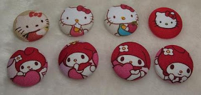 New Sanrio Fabric Buttons. All sample shown is on Size 6 button. (27mm width)